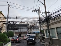 The electric utility wire situation in Thailand, and especially Bangkok, is wild. Several foot thick bundles of wires are jumbled on top of eachother haphazardly and electrical outages are quite common. In this particular case, a transformer exploded. ↩︎