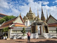 From the market we headed to catch the Bangkok metro to take us to see Wat Pho, better known as the Reclining Buddha, and the Grand Palace, former home to the Thai royal family and government until 1925. While Google Maps does make it fairly easy to figure out which lines to take and where to transfer if needed, I am always thankful for Scott’s willingness and ability to be our de facto navigator when we are in strange lands. When we popped out of the station and onto the street we were immediately swarmed with loud and pushy tuktuk drivers offering us rides to wherever we might possibly want to go. We shouldered through them in search of Wat Pho.
