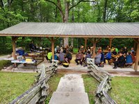 Members started arriving at the Chattooga Sounds campground Friday around noon. The weekend’s forecast called for scattered thunderstorms and the sky was threatening so everyone that was tent camping quickly scrambled to set up camp before the storms started. About 15 paddlers headed out for a trip on section 3.5. Remarkably the weather held for them while they were on the river, although those back at camp were treated to some serious thunder and lightning. Members continued to trickle in throughout the afternoon and early evening Friday and those that were unable to hit the river hung out and chatted.