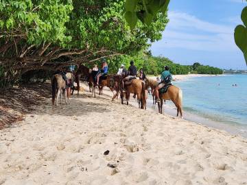 All week he had been complaining about us not being able to ride on the beach. I had been the “bad cop” as usual and explained that just because there were horses at the STXPC, it didn’t mean that they were available or appropriate to use to ride on the beach. I tried to explain all the ways this could go wrong, the least of which is the fact that it is actually illegal to ride them on the coral but I don’t think he heard me. I had told him that he was welcome to book a ride with the Cruzan Cowgirl but he never did…