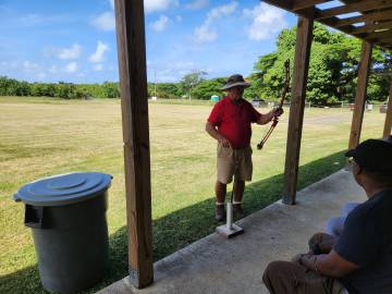 It had been probably ten years since he had last shot and he had never received any formal instruction, so today was enlightening to have the rigor that William’s instruction brought. They worked on posture and the shot sequence and refined those details. While William was working with Scott, eventually another couple showed up so he went over to work with them. The program is free and serves to get island residents interested in the sport of archery. It seemed fitting that Scott end his “summer camp” experience with such a quintessential summer camp activity.