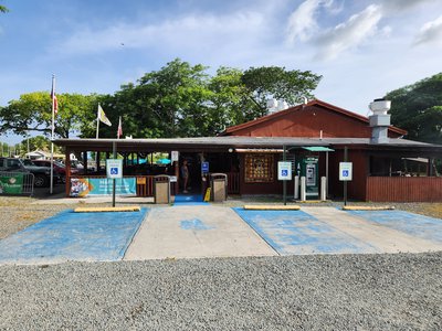 When he was done diving he picked up dinner for us from the famous La Reine Chicken Shack. When it was his turn to order he asked them what their most popular items were and used their suggestions to order that meal for each of us. He stopped at Rainbow Beach on the way back to kill time before it was time to get me from Sprat Hall.