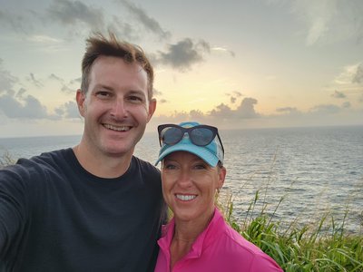 While I was teaching in the morning, Scott had decided to take the borrowed mountain bike out for a spin. He started out from the Pony Club grounds and headed into the Sprat Hall Nature Preserve that he had hiked earlier in the week. He covered 11.5 miles in a little under two hours and had fun exploring an abandoned Coast Guard station (he loves abandoned buildings) and an old lighthouse. He hung out at the lighthouse for a bit and took in the panoramic views of the island that it provided. From that vantage point he could see the Anallay Bay tidal pools and all of Cane Bay. The trail to the lighthouse was quite steep so he said that the way back down was much easier and faster!