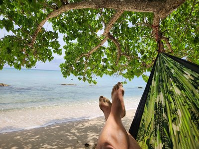 Scott dropped me back off at Sprat Hall for the afternoon sessions and then headed to Rainbow Beach for the afternoon where he strung his hammock between the trees right at the water’s edge and enjoyed looking out over the bay and occasionally taking a dip in the warm Caribbean. When he picked me up that afternoon we headed straight to Sandy Point to spend the rest of the evening.