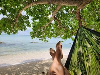 He got back to the STXPC grounds and watched me teach for a while before heading over to nearby Rainbow Beach to hang out in his hammock until I was done and ready to be collected. He scooped me up when my morning session was over and we headed back up to Hilltop House for lunch and our now customary midday siesta.