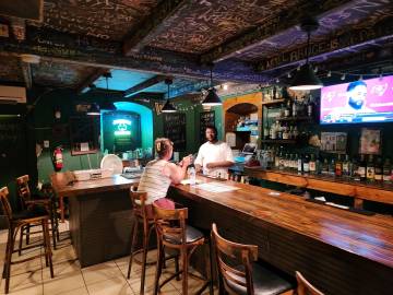 And then sadly we were back at the pier and the cruise was over. We decided to walk across the street into town to find some dinner, taking the suggestion that our server from the previous night’s dinner had offered of The Lost Dog, a dive bar nearby. Three-rum-punch Janna is very chatty and I proceeded to chat up the bartender, who as it turns out, is probably the most traveled human being that Scott and I have ever encountered, having been to over 40 countries. He entertained us with tales of his travels as Scott and I shared a pizza. Other locals came and went and I may or may not have inquired about their life stories as well. (I am glad Scott doesn’t get tired of my obnoxiousness.)