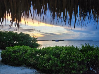 We had a little time before we needed to shower and get dressed for the wedding so we decided to take out one of the kayaks that we had access to with our rental. We decided on the tandem kayak and I was surprised when we were able to both lower ourselves down into it off the dock successfully without capsizing it. We (and by “we” I mean mostly Scott) paddled our way out of our marina’s channel and into the bay. The bay was protected on three sides by mangroves and made a protected area for anchoring boats. We paddled around the area for a while and observed some of the boats before hopping out of the kayak and taking a little float next to it. The water was surprisingly shallow and the sand was unpleasantly squishy, reminding me of Lake Hartwell’s muddy base as it squished between my toes so I didn’t spend much time out of the boat. We decided to head back in and we were now paddling against the current so I actually helped Scott paddle this time. We disembarked from the kayak and climbed back up onto the dock surprisingly easily, again not capsizing the boat.