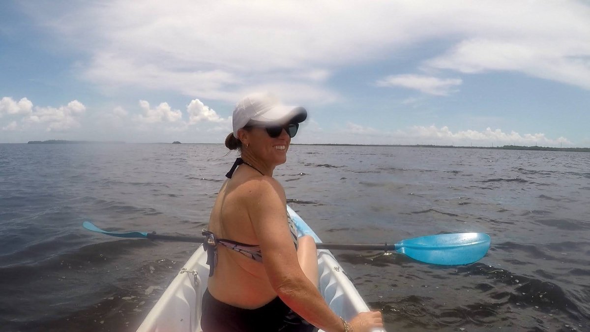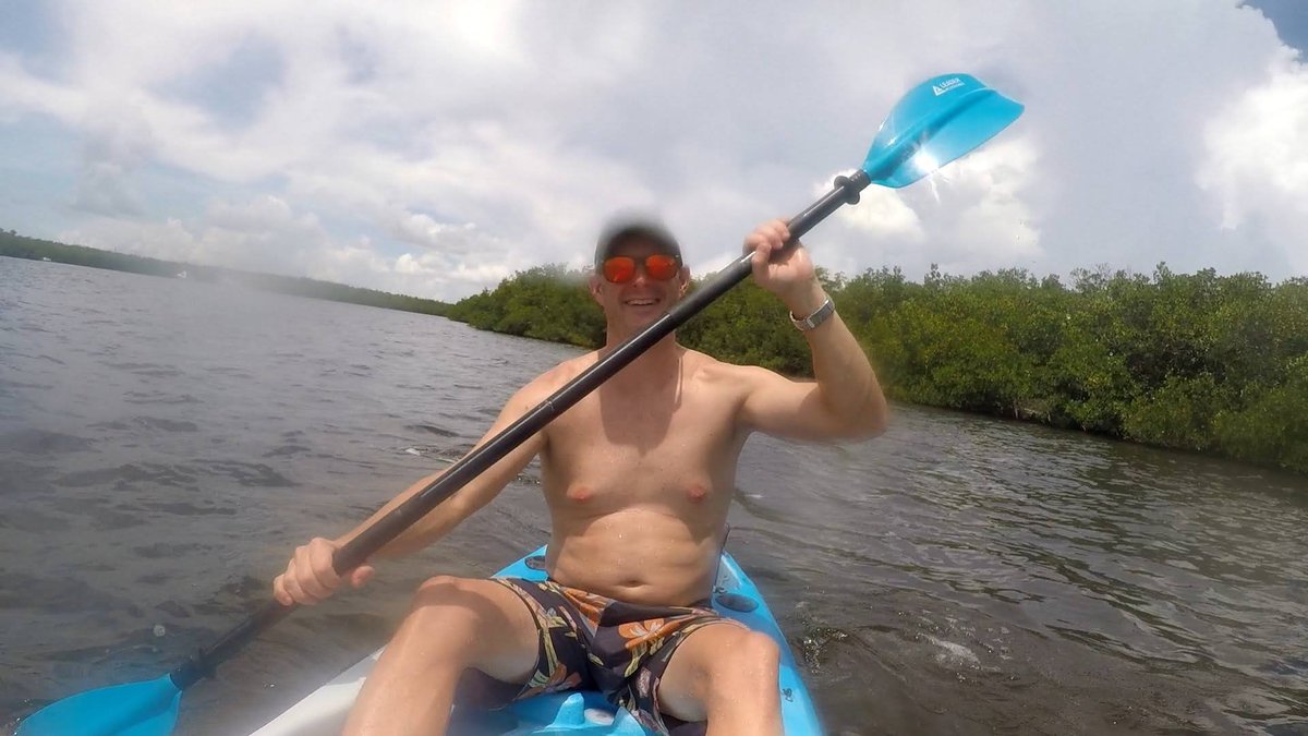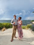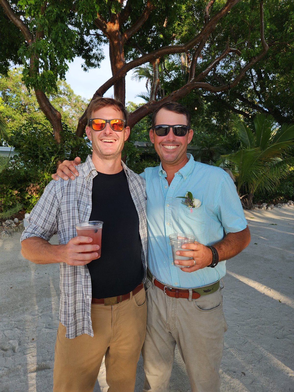 We had a little time before we needed to shower and get dressed for the wedding so we decided to take out one of the kayaks that we had access to with our rental. We decided on the tandem kayak and I was surprised when we were able to both lower ourselves down into it off the dock successfully without capsizing it. We (and by “we” I mean mostly Scott) paddled our way out of our marina’s channel and into the bay. The bay was protected on three sides by mangroves and made a protected area for anchoring boats. We paddled around the area for a while and observed some of the boats before hopping out of the kayak and taking a little float next to it. The water was surprisingly shallow and the sand was unpleasantly squishy, reminding me of Lake Hartwell’s muddy base as it squished between my toes so I didn’t spend much time out of the boat. We decided to head back in and we were now paddling against the current so I actually helped Scott paddle this time. We disembarked from the kayak and climbed back up onto the dock surprisingly easily, again not capsizing the boat.