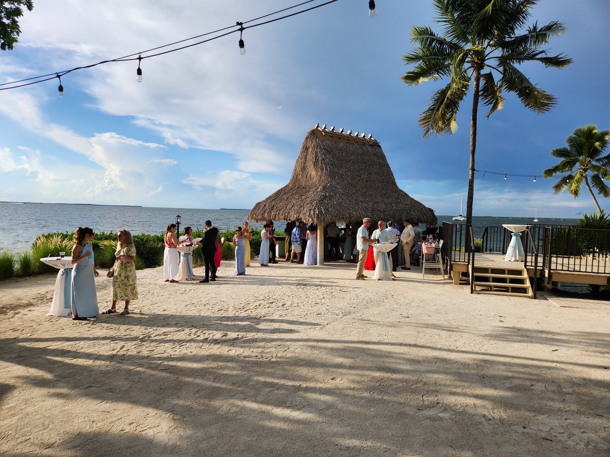 We arrived fairly early to the wedding venue, The Key Largo Lighthouse Beach, so we had some time to walk around and admire the property and its waterfront views. They had picked the most idyllic spot to get married. Holly was a beautiful bride and her brother Gus served as the officiant and was his typical goofy self which was perfect. I cried happy tears as she and Bradley said their vows. Holly’s brother-in-law was in charge of FaceTiming Holly’s father who unfortunately was not able to travel to the wedding due to an emergency abdominal surgery a few days prior. They kept the ceremony short and sweet and then we were sent to the pre-reception cocktail hour that featured a tiki-hut bar right on the water.