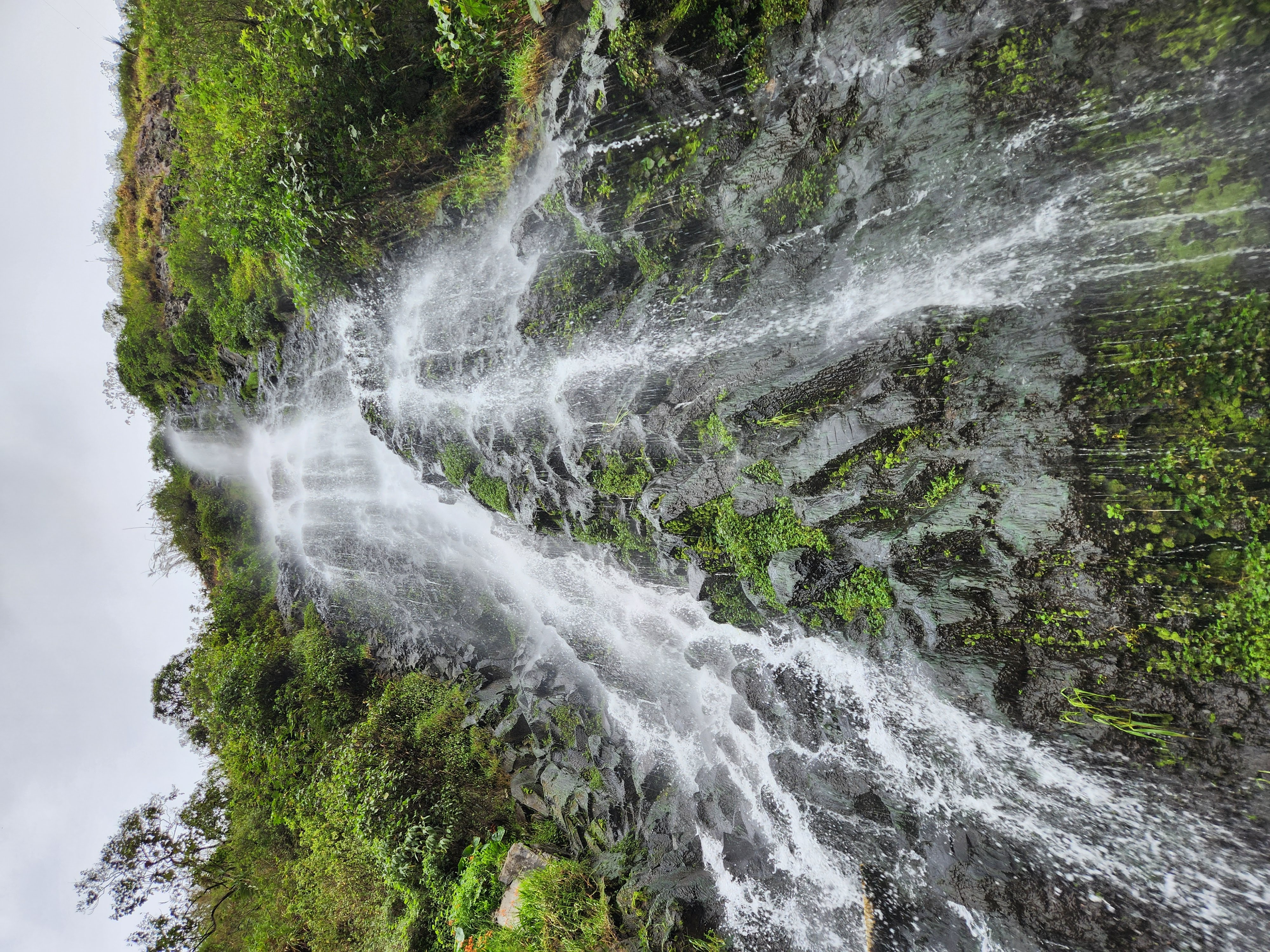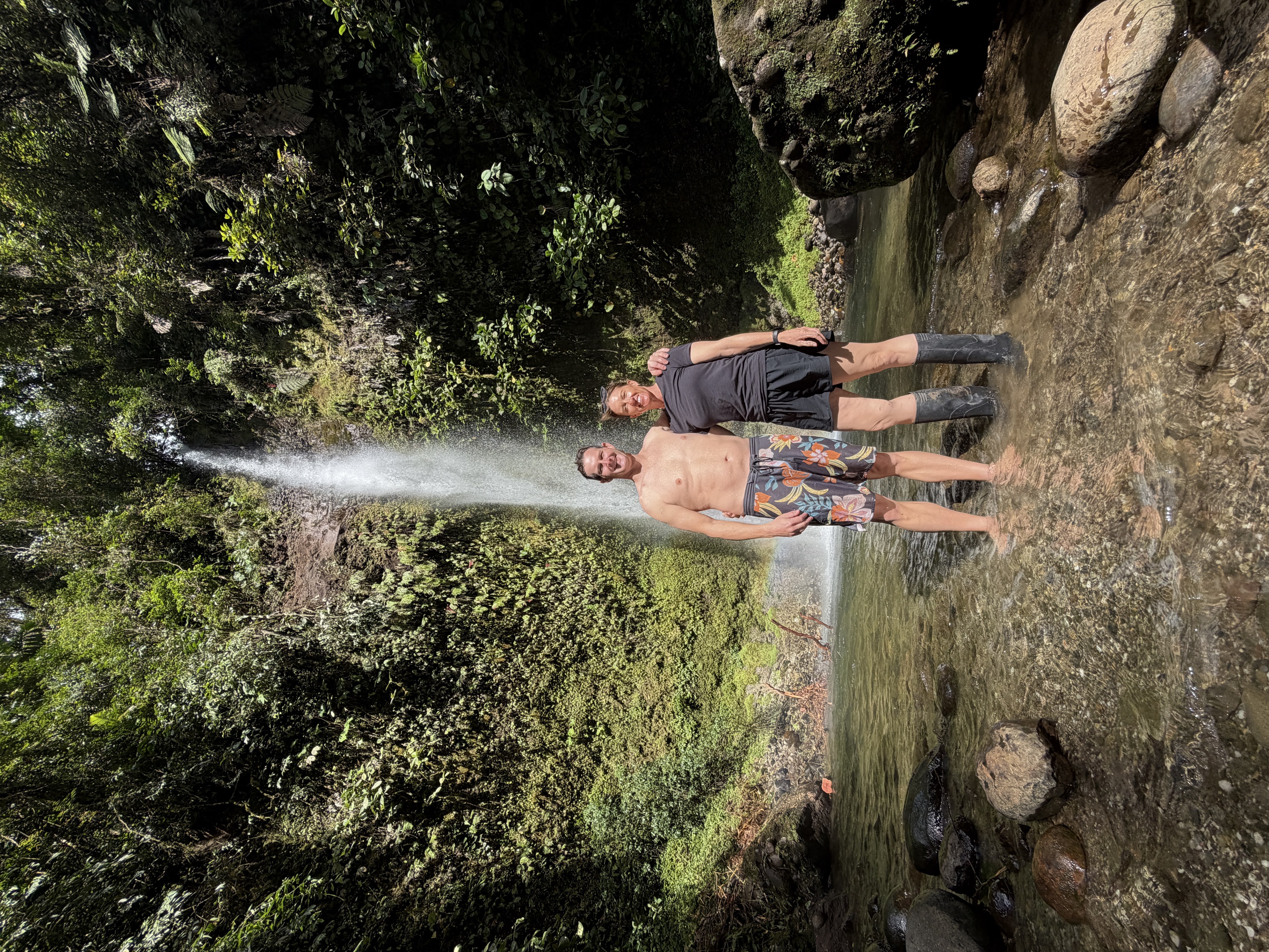A few minutes later we arrived at the waterfall. In typical Scott fashion, he stripped down (thankfully just to his swim trunks since Carlos was chaperoning this adventure), and hopped in the water, headed for the 21 meter waterfall. I stayed on the shore and perched myself on a boulder to watch since I was still feeling off. He enjoyed getting pummeled by the strong water for a bit before coming back over to the edge of the pool and redressing.