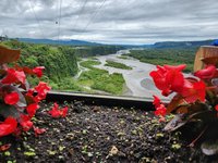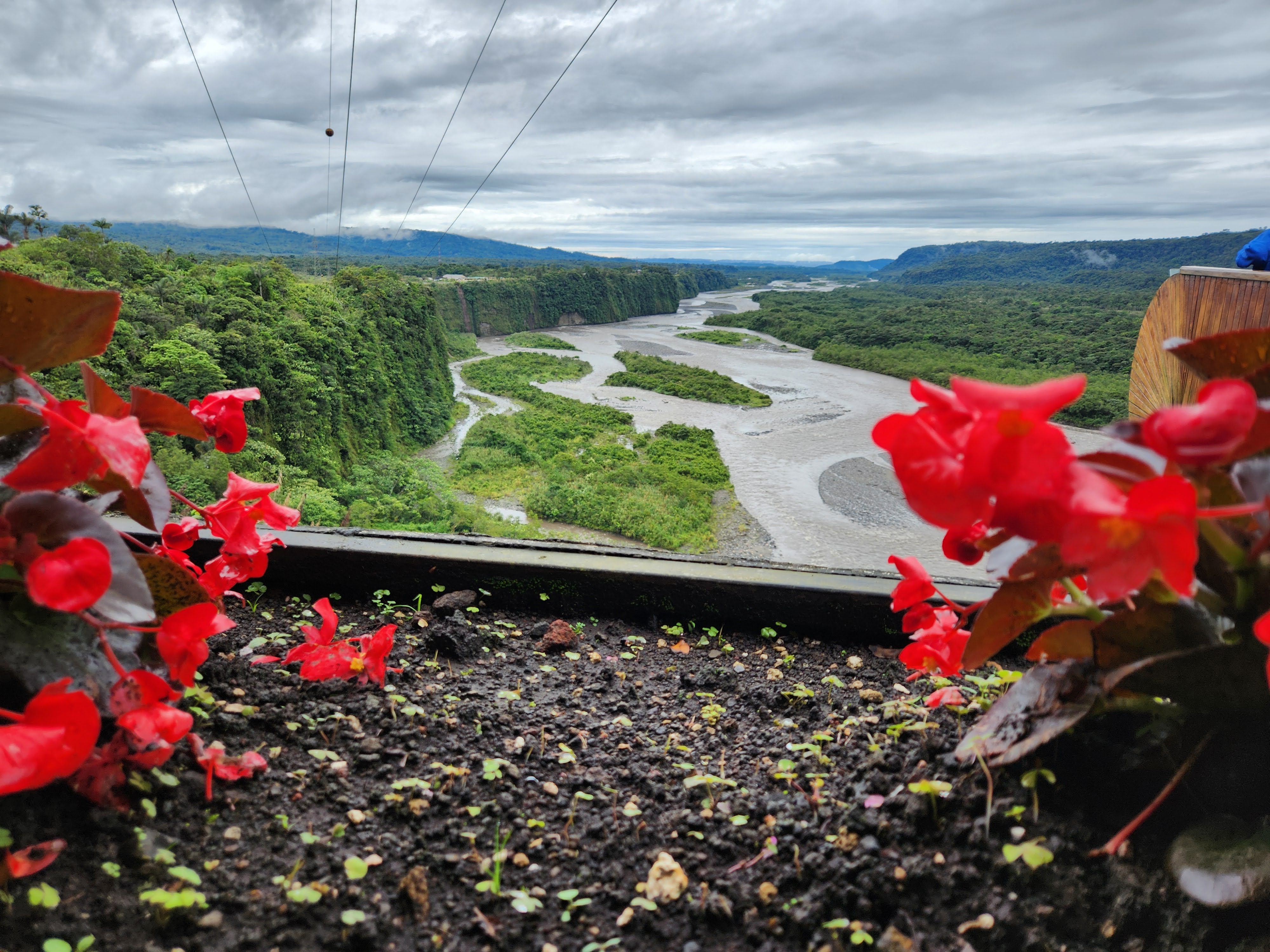 We eventually stopped at Mirador Miramera, which we quickly surmised was a viewpoint overlooking the Pastaza river, and essentially an Instagram park. We were able to gaze out over the wide river and it was interesting to see how much it had changed since its headwaters in Baños. At its origin it was narrow and raging as it sliced its way through the narrow volcanic rock canyon, but as it came out of the mountains and made its way towards the flat Amazon, spread out and slowed down to a lazy and sprawling body of water. We took some pictures at the overlook, and I was able to buy a Sprite to attempt to continue soothing my stomach.