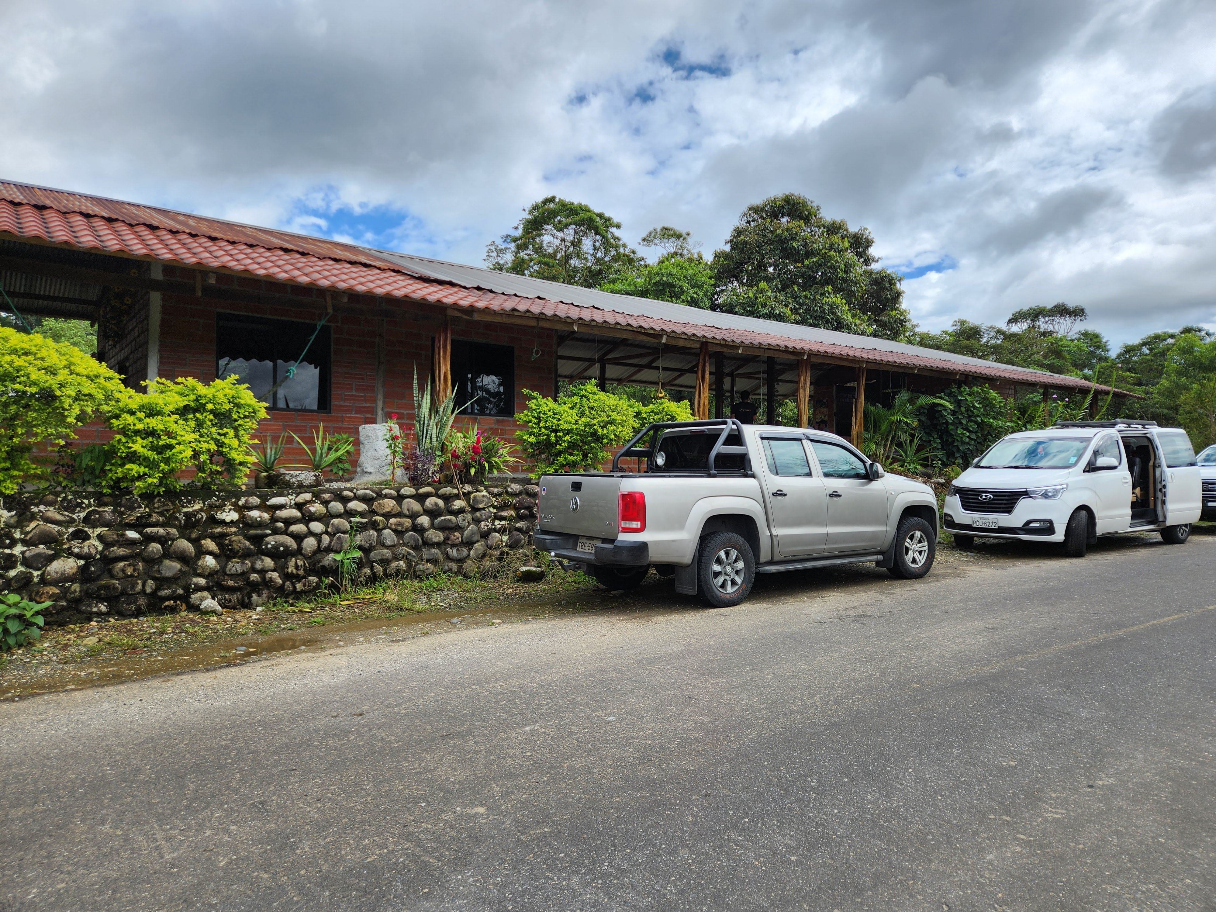 Despite having taken an arsenal of meds this morning, I was feeling puny still and was hoping that I would cope ok during the 2.5 hour drive. Blessedly, Carlos was a sane driver because had he driven in the typical Ecuadorian manner, I think that would have sent my delicate stomach over the edge. Speaking of Ecuadorian drivers, it was on this drive that multiple cars, including ours, got PASSED in a poorly lit narrow two-lane TUNNEL by a full-sized city-to-city BUS! Scott and I looked at each other with astonishment, with looks of “Did that just happen?” on our faces.