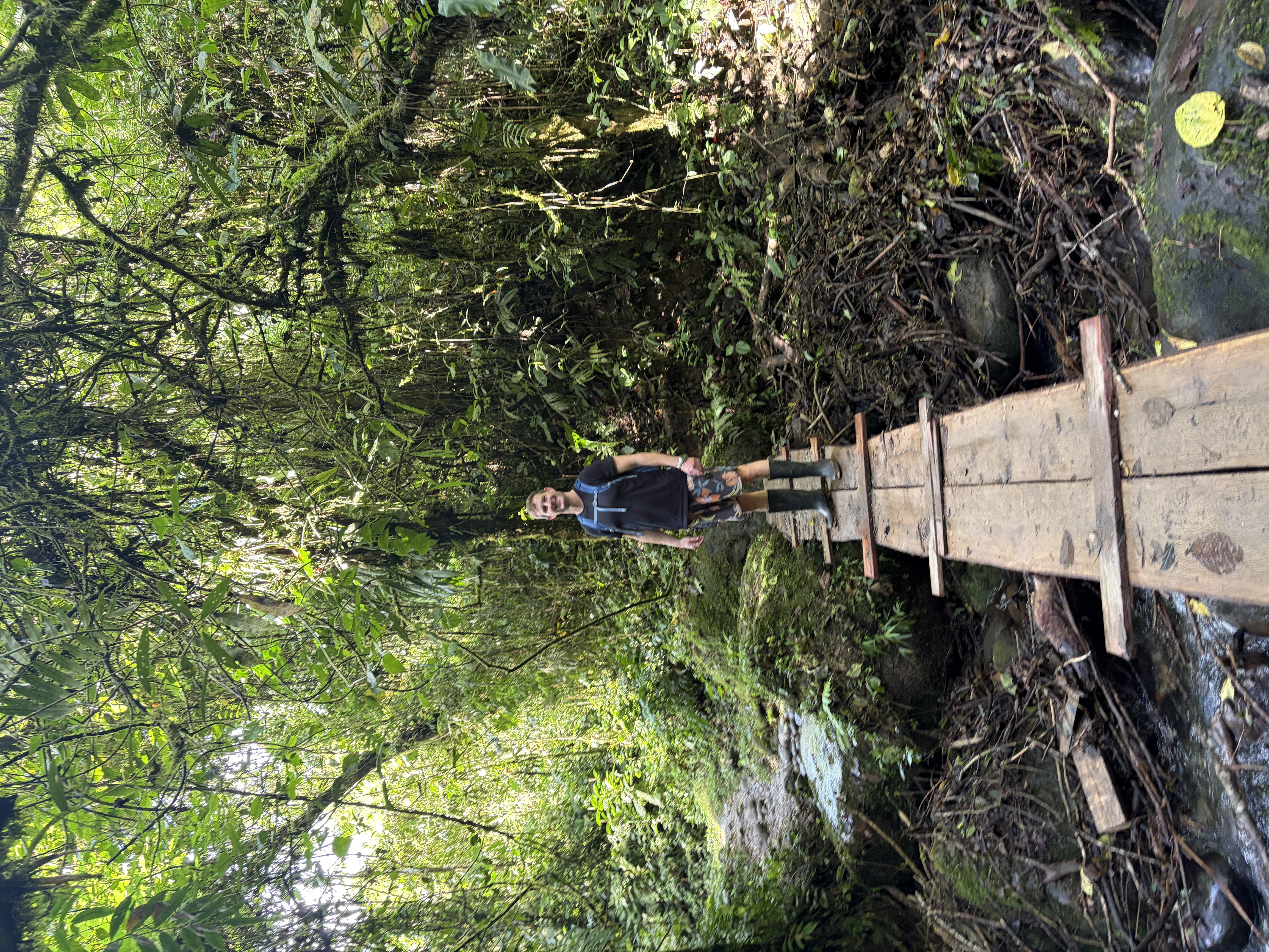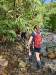 After lunch we drove down the road to embark on today’s main event, a hike to the Cascada Hola Vida. We donned the rubber boots that he had brought for us and off we went. The hike also served as a narrated nature walk and Carlos showed us various plants and taught us about their properties and uses in indigenous culture. He was quite skilled at identifying bird calls as well and could tell what sort of bird we were hearing and then would show us a picture of it from an app on his phone if we were unable to see the actual bird itself.