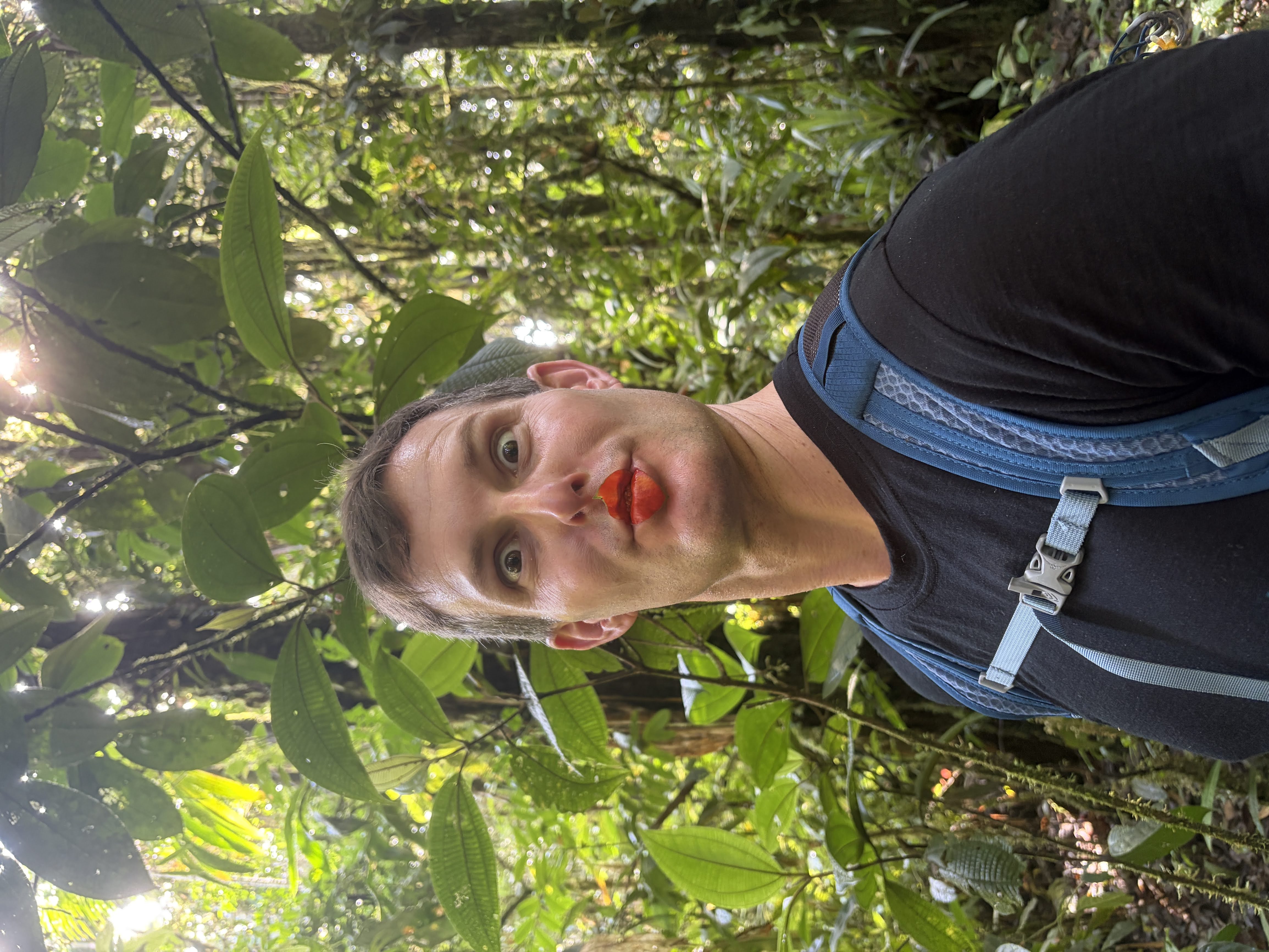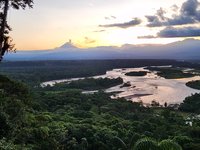 Once there, Carlos and Scott opted for the steeper climb and I took the more looping trail with switchbacks and met them up at the observation platform. It was an incredible view and you could see miles and miles of the Amazon jungle spread out below with the Pastaza river running widely through it, and way beyond that, looming over the jungle, several of the famous volcanoes; Tungurahua in Baños being the closest.