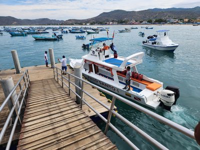 Scott had booked our tour and on Sunday morning after breakfast we walked into Puerto Lopez to the tour company’s storefront as instructed. From there our group followed the guide down to the same pier that Scott had left from the day before on his dive trip. While waiting for the boat to arrive we chatted with some of the other tour-goers and met a pair of young Dutch engineers who were assigned to a sea-salt extraction project a few hours south of Puerto Lopez. We quickly learned that they had their very own security detail assigned to them, a pair of late 20’s dark sunglass-clad Ecuadorians who must have been packing the heat in the tactical fanny packs that were sporting, and we felt quite safe to be on the same trip- we couldn’t imagine these fellas letting any cartel funny business go down around us on their watch.