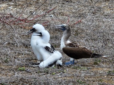 Now, one of the things that the pictures will not give you an accurate portrayal of was the smell. Tens of thousands of fish-eating birds all nesting on one small island creates quite the aroma. As ground nesting birds, they strategically excrete in a ring around their ground nest as a smelly defense against rats who are repelled by the booby guano. Rats1 are an invasive species here, introduced accidentally via some of the first ships that stopped at the island centuries ago, and since the blue footed boobies are ground nesting, pose a real threat to the life cycle of the birds, as rats find their eggs rather tasty and quite easy to access.