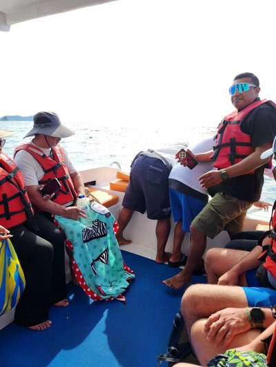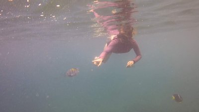 Once aboard the boat they fed us lunch, and then were given snorkel gear and taken a short distance from the shore to Bahia Drake, one of the spots where Scott had dived yesterday. The water felt incredible and in no time we got to see several schools of vibrant tropical fish. Our guide announced that a sea turtle had been spotted and we swam out after him in hopes of getting a view of it. We were successful and got to observe the turtle swimming around for several minutes. After about a half hour of snorkeling we were summoned back to the boat so that we could return to Puerto Lopez.