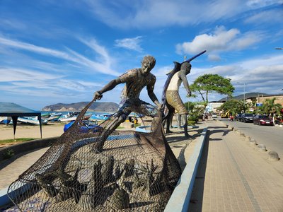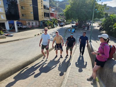 Before strolling back into town we caught the sunset from the beach outside our hotel. We had enjoyed our first visit to Carmita’s so much that we decided to visit there again for tonight’s dinner. We had another lovely meal and chatted with Carmita herself via Google translate and poorly mangled Spanglish on our part. She seemed to enjoy telling us that her restaurant had been around for 45 years and was the first in Puerto Lopez and she happily obliged when we asked her to pose for a picture with us outside the restaurant. Carmita was yet another friendly Ecuadorian that went out of her way to make our trip extra special.