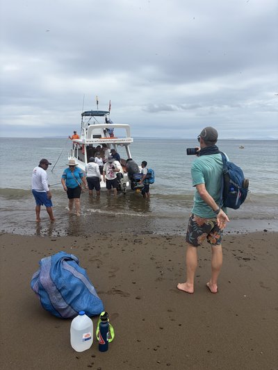 Once aboard the boat they fed us lunch, and then were given snorkel gear and taken a short distance from the shore to Bahia Drake, one of the spots where Scott had dived yesterday. The water felt incredible and in no time we got to see several schools of vibrant tropical fish. Our guide announced that a sea turtle had been spotted and we swam out after him in hopes of getting a view of it. We were successful and got to observe the turtle swimming around for several minutes. After about a half hour of snorkeling we were summoned back to the boat so that we could return to Puerto Lopez.