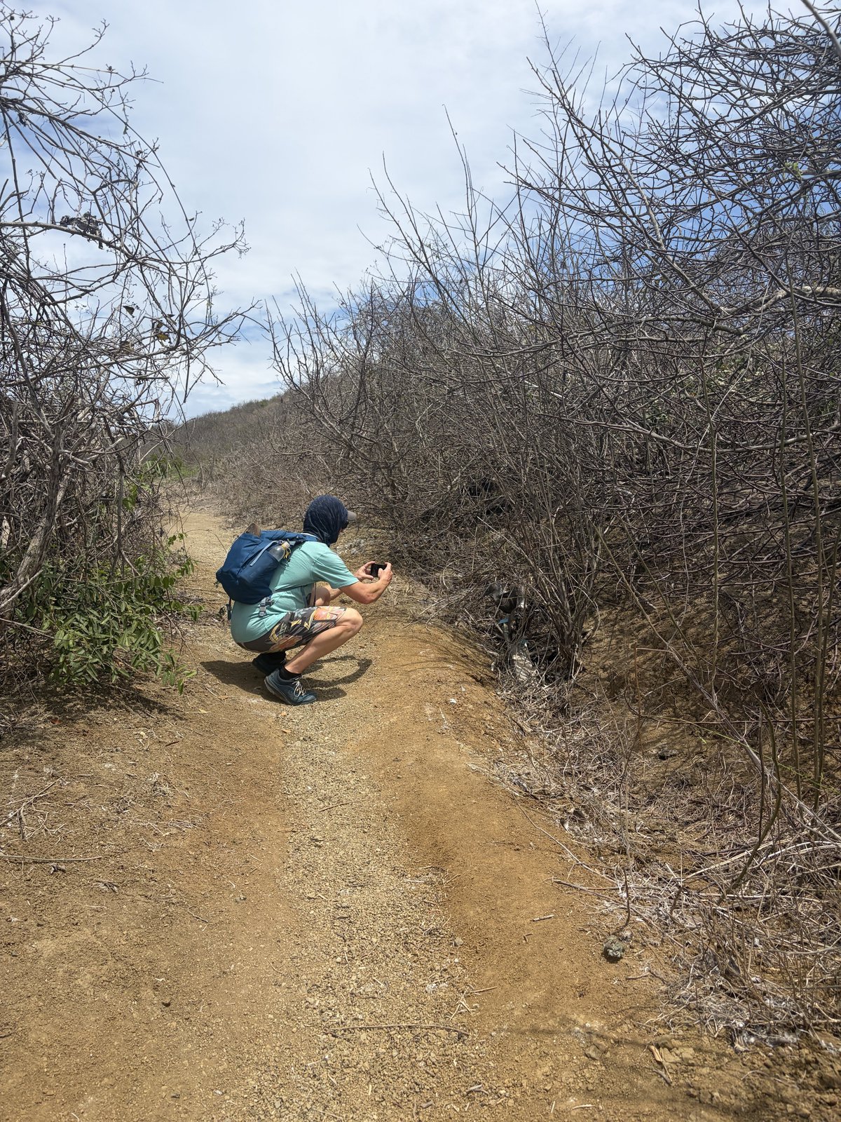 This was the dry season and it was quite arid and much hotter than the mainland. Everything on the desert island was crunchy and a drab brown this time of year. The steep incline was often punctuated by stairs and blessedly, our guide would stop occasionally to show us an interesting plant or to listen for a particular bird and these nature talks served as welcome breaks to catch our breath and to cool off.