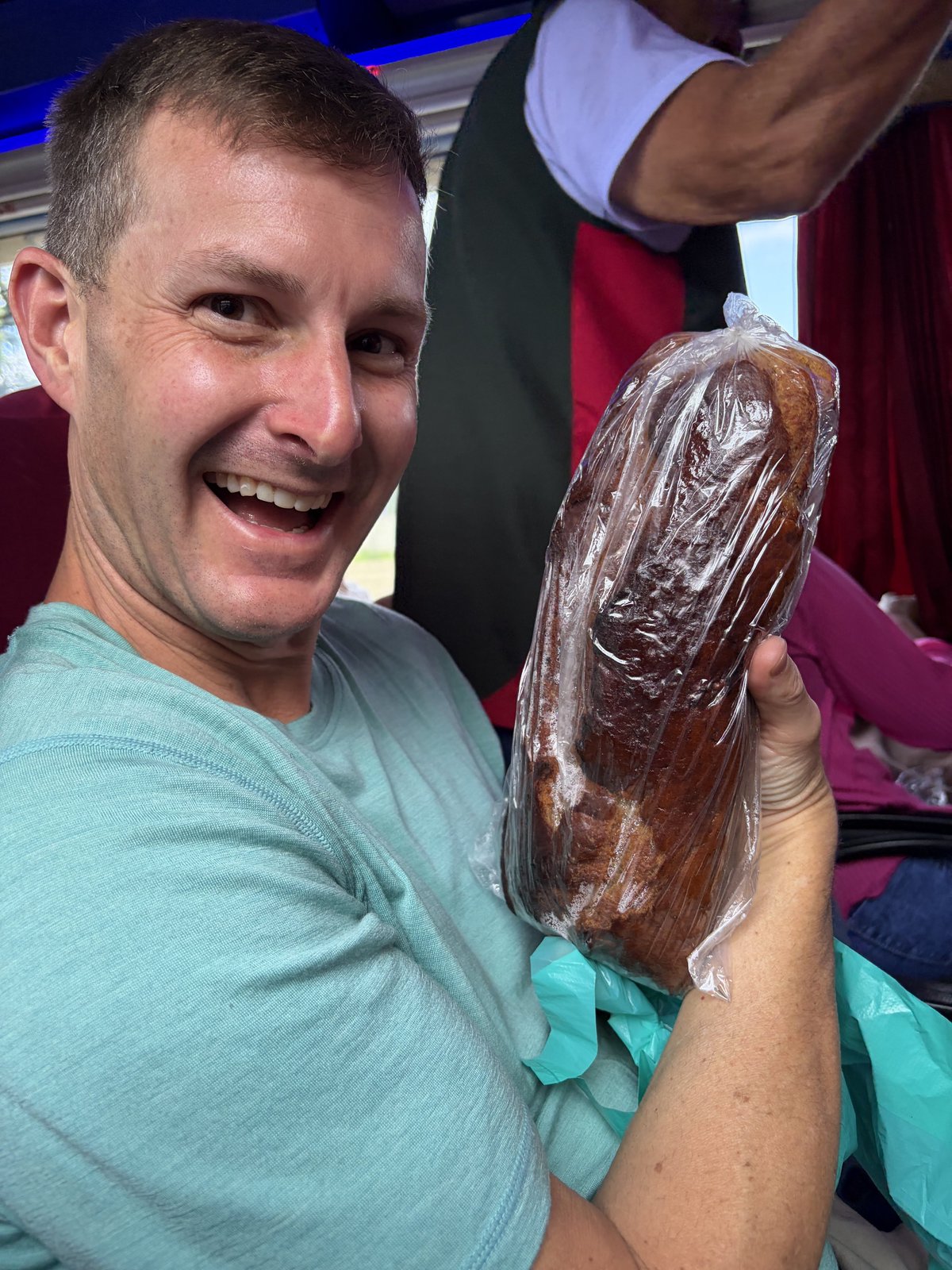 The only other remarkable thing about this bus ride was that at one point when a vendor boarded the bus peddling his banana bread, we said “yes” to his sales pitch for pan de banana and soon found ourselves the proud owners of a huge loaf for $3. It was delicious and we must have munched on it for 3-4 days, so it was well worth it. We kept referring to it as our “bus bread.”