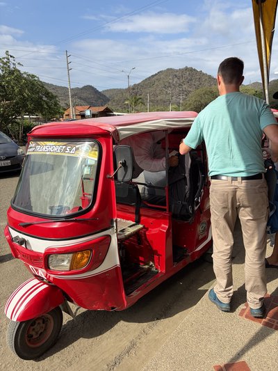 As promised, at 5:30 AM, the taxi was there waiting for us and after bidding “adios” to Wilmer at Casa Montalvo, it whisked us away to the van depot to start our very long day of travel to the Ecuadorian coast. The van ride to Guayaquil was about 3.5 hours and wasn’t terrible except for the part where I was sitting next to Typhoid Mary who coughed incessantly the entire ride. So persistently in fact that at one point, I texted Scott, who was sitting in the front seat of the van, and told him that I was sitting next to “Patient Zero1.”