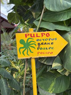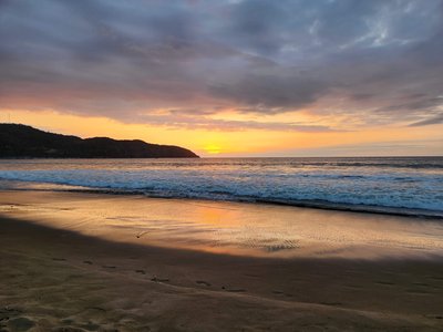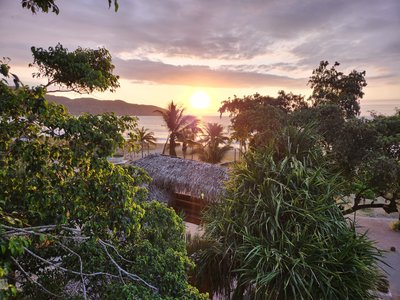 Eventually we made it to the Puerto Lopez bus terminal and once off the bus found a tuk-tuk driver that would take us to the seaside Hosteria Mandala where we would be spending the last few days of our trip. We arrived, checked in, and were shown to our small bungalow which was adorable and was just a short walk from the beach. Each of the bungalows had an aquatic animal themed name and ours was the Pulpo, spanish for octopus. They handed us the key which was attached to an awkwardly and comically huge octopus shaped wooden keychain and told us to let them know if we needed anything.