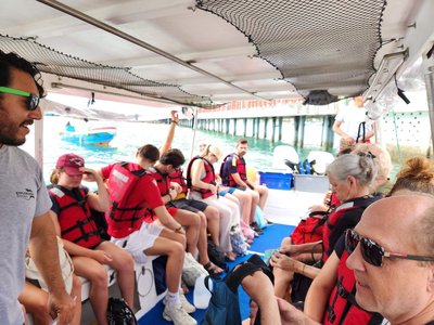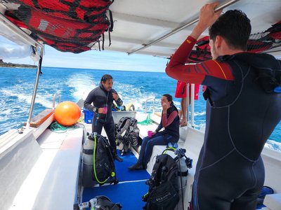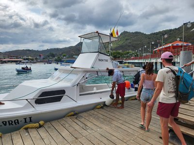 Over dinner Scott told me about his dive: The actual dive trip was light on participants, just Scott and a young French couple, but they shared the boat ride out to the dive site with a group of tourists that were heading to Isla de la Plata to explore and hike for the day. The group was taking the same trip that we would be taking the next day. About 20 minutes into the boat ride, one of the guides realized they had forgotten the lunches back at the boat launch, so they had to turn around and head back to retrieve them. After getting them, they carried on, and eventually the boat dropped off the tourists at Isla de la Plata and then the divers headed out for their first dive.