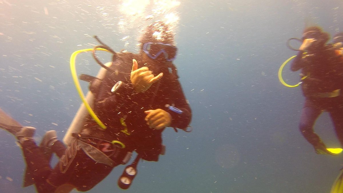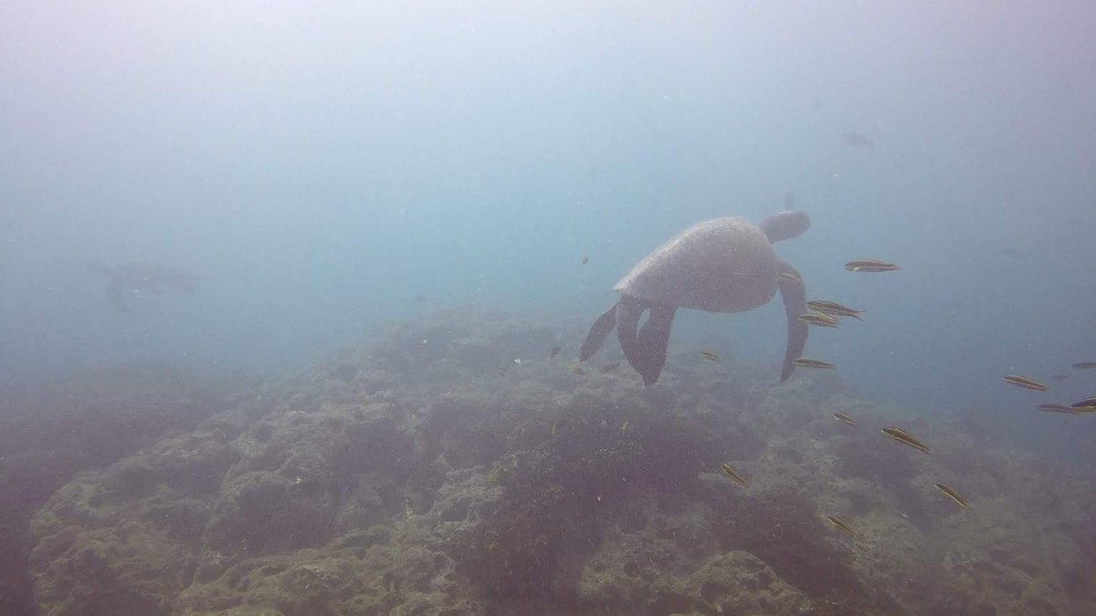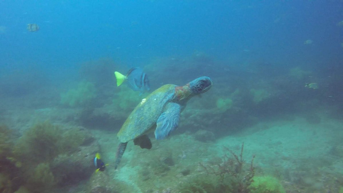 Scott ranked these dives as one of his top 5 because of the abundant and beautiful sea life that he got to see. He reported that the coral was healthy and he got to see countless huge schools of fish. Some of the highlights were: yellow pufferfish, several green moray eels, blue sea stars, and multiple large sea turtles (at one point one of them actually bumped into him!). The most exciting moment of the day for him was when he caught a glimpse of a tiger snake eel. At first he thought it was a sea snake, but eventually figured out what it actually was, having fallen for the eel’s clever guise of looking almost exactly like the poisonous snake. He was excited about the pictures he took because the new red filter for his Go Pro made the pics look much clearer and the colors more accurately depicted.