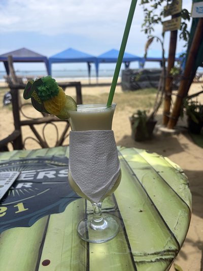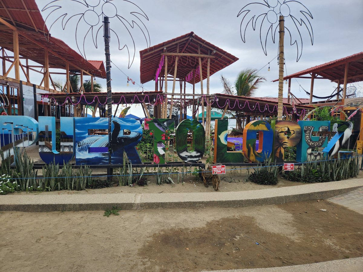 So early Saturday morning, after a breakfast at our Hosteria Mandala, Scott headed a few blocks into town via the beachfront sidewalk that paralleled the shore, for an all day dive. I was on my own for the day and entertained myself by walking on the beach and then eventually laying a towel down on the sand, alternating between reading and people-watching. Mid-day when my stomach announced that it was hungry, I wandered into town for lunch and decided to try out one of the gaudy fluorescent lit open-air beachside tourist traps, only because the drink menu was intriguing and the obnoxious loud music hadn’t started up yet in an attempt to attract the dinner crowd. With my toes in the sand and looking out over the Ensenada de Salango bay, I enjoyed an umbrella drink and some calamari and plantains. Satisfied from my lunch I headed back to our hotel for an afternoon of the same, with the addition of some hammock time on the front porch of our bungalow, the Pulpo.
