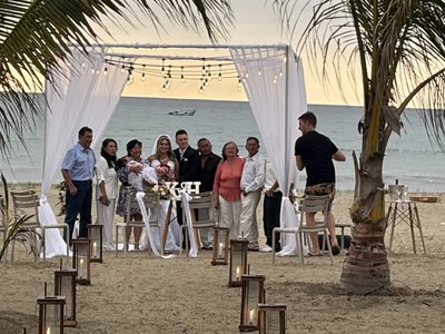 Scott got back late afternoon and came and found me on the beach. Throughout the day I had observed a canopy being set up for a beach wedding ceremony, and from afar as we watched the sunset, we happened to catch the ceremony. As we were walking back to the Pulpo, the wedding participants called out to Scott to see if he would take their pictures. They picked the right guy- Scott hammed it up with them by playing his favorite trick of agreeing to take a picture and then pretending to run away with their phone which they found hilarious, and happily fulfilled the role of enthusiastic wedding photographer.